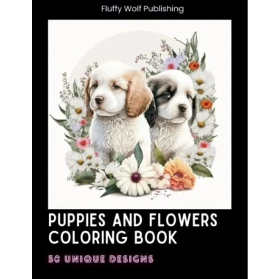 Puppies and Flowers Coloring Book: 50 Beautiful Designs of Pages Detailed Dog Portraits Book Magnificent Faces: An Adult with Relaxing Faces