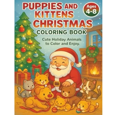 Puppies and Kittens Christmas coloring Book: Cute holiday fun with adorable dogs cats for kids ages 4 8 (Let’s Colour Studio Collection)