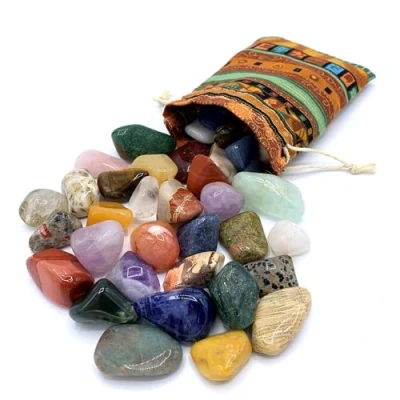 PURAJA Gemstone Set, Colourful Mix of Natural Tumbled Stones, Variety Pack, Loose Gemstones