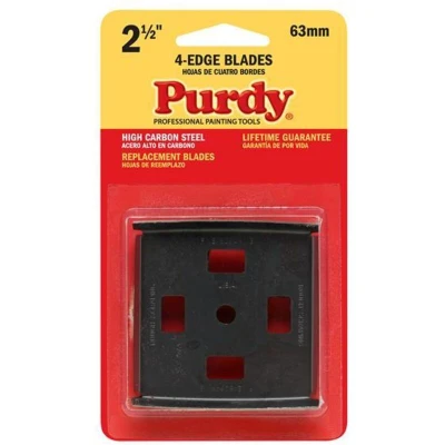 General description The Purdy® Four Edge Scraper Replacement Blades are crafted from strong high carbon steel, designed for use with the Purdy® Four Edge Carbide Scraper (PUR144900240). Each blade features four cutting edges, two for aggressive scraping and two for finishing, making them versatile for various applications, from heavy-duty surface preparation to detailed work. Technical specifications Material: High carbon steel Number of edges: Four Application: Heavy-duty scraping and finishing Compatibility and accessories Compatible with: Purdy Four Edge Carbide Scraper Contents: 1 Blade Installation Insert the blade into the scraper handle following the manufacturer's instructions. Ensure it is securely fixed before use. Usage Use for scraping surfaces, removing paint, varnish, or other materials. Apply appropriate pressure and replace blades when edges become dull for optimal performance.
