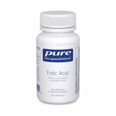 Folic acid (https://supphub.prf.hn/click/camref:1101l5c7oR/creativeref:1100l169373/destination:https%3A%2F%2Fsupplementhub.co.uk%2Fcollections%2Ffolic-acid-supplements%29 by Pure Encapsulations () provides a daily dose of 800 ug of folic acid. It is recommended that women planning to conceive and pregnant women should take at least 400 ug per day, to reduce the risk of neural tube defects in a developing foetus. Folic acid is also needed for general health, and may help to reduce tiredness and fatigue, whilst also supporting mood and emotional health. - Recommended nutrient for healthy conception and pregnancy to reduce the risk of neural tube defects - Supports mood and emotional health - Can help to reduce tiredness and fatigue - Supports normal functioning of the immune system - May help to prevent heart disease Folic acid is a B vitamin which is important for many aspects of health. It is recommended to take folic acid 3 months before beginning to try to conceive (https://supphub.prf.hn/click/camref:1101l5c7oR/creativeref:1100l169373/destination:https%3A%2F%2Fsupplementhub.co.uk%2Fcollections%2Fpre-pregnancy-vitamins%29, and during pregnancy (https://supphub.prf.hn/click/camref:1101l5c7oR/creativeref:1100l169373/destination:https%3A%2F%2Fsupplementhub.co.uk%2Fcollections%2Fprenatal-pregnancy%29, to prevent neural tube defects, which can lead to conditions such as spina bifida. Folic acid is also important for energy levels and can help to reduce tiredness and fatigue. It is also important for the metabolism of the homocysteine, which is an amino acid that has been found to be high in those with heart disease. You can read about folate versus folic acid (https://supphub.prf.hn/click/camref:1101l5c7oR/creativeref:1100l169373/destination:https%3A%2F%2Fsupplementhub.co.uk%2Fblogs%2Fnews%2Ffolate-vs-folic-acid-whats-the-difference%29 in our guide. Suggested use is 1 capsule daily.