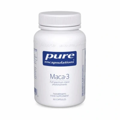 Maca-3 by Pure Encapsulations contains extracts of maca, a plant that has been used traditionally for thousands of years and studied in modern research for its health benefits. It is considered a superfood for its many positive benefits. Maca may help to increase sexual desire, reduce erectile dysfunction and improve fertility in men by improving semen concentration. It may also reduce menopausal symptoms, improve mood, protect the skin from UV damage, boost energy levels and help to improve blood pressure.