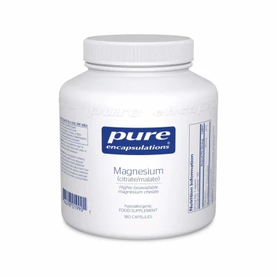 Magnesium Citrate/Malate by Pure Encapsulations provides a highly absorbable form of magnesium, an important mineral for health. It contributes to a healthy nervous system and can help to reduce tiredness and fatigue, and improve sleep. It is an important mineral for healthy bones and teeth. It is also important for healthy muscle function, and may help to prevent muscle cramps.