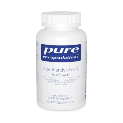 This soy-free, GMO-free and sunflower-derived phospholipid-bound choline supplement supports cellular function, cognitive function and liver health. It supports fat metabolism in the liver to promote energy production, and it benefits infant cognitive development during pregnancy. Phosphatidylcholine acts as a precursor (or, forerunner) for phospholipids and the neurotransmitter acetylcholine, which is involved in attention, memory and neuromuscular function.