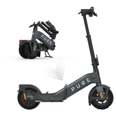 JoybuyThe Pure Advance Flex Folding Electric Scooter in Platinum Silver is an ultra-compact, high-performance e-scooter featuring a powerful 924W motor, up to 32.3 miles range, advanced steering stabilisation, water resistance, and smart app connectivity, designed for easy storage and intuitive, stable riding. For private land use only.