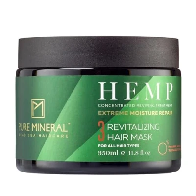 Pure Mineral Hemp Hair Mask for Deeply Nourished Hydrating, Revitalizing, Dead Sea Minerals Silicone Free, Sulfate Paraben Free 350ml