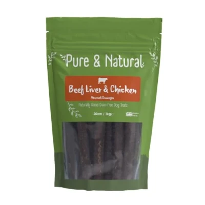 Pure & Natural Beef Liver Chicken Dog Sausages 1kg 20cm High Protein Grain Free Meat Treats for Training Rewards Delicious Hypoallergenic Snack Made in Britain