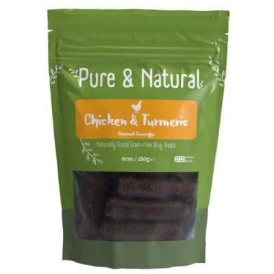Pure & Natural Chicken Turmeric Dog Sausages 250g 6cm High Protein Grain Free Meat Treats for Training Rewards Delicious Hypoallergenic Snack Made in Britain