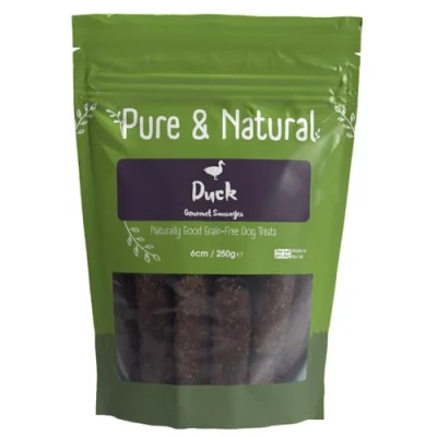 Pure & Natural Duck Dog Sausages 250g 6cm High Protein Grain Free Meat Treats for Training Rewards Delicious Hypoallergenic Snack Made in Britain