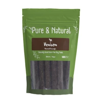 Pure & Natural Venison Dog Sausages 1kg 20cm High Protein Grain Free Meat Treats for Training Rewards Delicious Hypoallergenic Snack Made in Britain