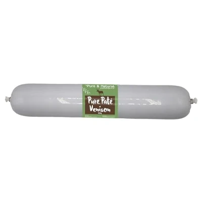 Pure & Natural Wet Dog Food Pate Chub Roll, 97% Venison 800g High Meat Content, Moist, Grain Free for All Breeds