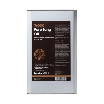 Pure Tung Oil by Furniture Clinic - 5L - Nourishes, Protects, and Enhances The Beauty of All Items of Wood -100% Natural, Food Safe Oil, for Indoor and Outdoor Wood