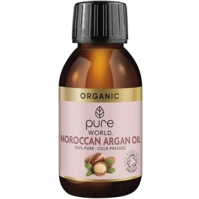 Pure World Natural Organic Moroccan Argan Oil 100ml, 100% and Cold Pressed Premium for Face Hair Skin Nails Moisturiser Dry Anti Frizz Treatment