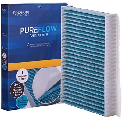 BREATHE BETTER AIR. PureFlow by Premium Guard cleans with 4 filtration levels. The 1st stage is a particulate filtration media that captures all particles. PureFlow's electrostatically charged first layer attracts and traps fine particles yet allows for high flow of air. FRESHENS AND CONDITIONS YOUR CABIN AIR. The second and third stage layers include activated carbon that can stop dangerous gasses like carbon monoxide and sulfur dioxide. The 3rd layer is infused with baking soda to absorb bad odors. NEUTRALIZING FINAL LAYER. The 4th Stage of PureFlow's advanced filtration technology includes copper and silver ions that neutralize fine contaminants help deliver the cleanest air to your vehicle's passengers. COMPATIBLE WITH Dodge Hornet|Fiat 500L, 500X|Jeep Compass, Renegade REPLACES Chrysler 68338536AA|Fiat 68212070AA, 68267921AA, 68338536AA. Always check fitment using the Vehicle Filter Lookup, Weight: 0.36 Pounds, Manufacturer: Premium Guard