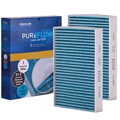 BREATHE BETTER AIR. PUREFLOW by Premium Guard purifies the air you breathe with 4 filtration levels. Particulate filtration media captures fine particles like dust and pollen yet allows for high flow of air. FRESHENS AND CONDITIONS YOUR CABIN AIR. Activated charcoal can trap gases like carbon monoxide and sulfur dioxide. This layer is also infused with baking soda to absorb bad odors. ADVANCED FILTRATION TECHNOLOGY. PUREFLOW’s advanced filtration provides a healthy cabin atmosphere, ensuring you're breathing clean air, while helping to maintain the performance of the car’s climate control system. COMPATIBLE WITH BMW 530e, 530e xDrive, 530i, 530i xDrive, 540d xDrive, 540i, 540i xDrive, 550i, 740e xDrive, 740i, 740i xDrive, 745e xDrive, 745Le xDrive, 750i, 750i xDrive, 750Li xDrive, 760i xDrive, 840i, 840i Gran Coupe, 840i xDrive, Weight: 0.67 pounds, Manufacturer: Premium Guard