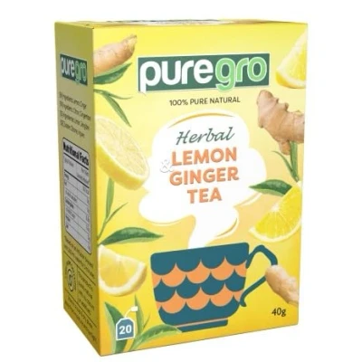 Puregro Herbal Lemon Ginger Tea 40g 20 Bags 100% Pure Natural Caffeine Free No Colours or Additives.