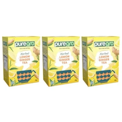 Puregro Herbal Lemon Ginger Tea 40g 20 Bags (PACK OF 3) 100% Pure Natural Caffeine Free No Colours or Additives.
