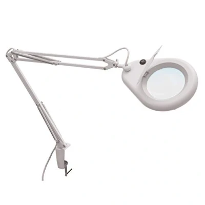 [Magnifying Lens] The head of the lamp has a 12.5cm magnifying lens incorporated in it. The lens has 2x magnification. There are 56 long-lasting LED bulbs spaced around the magnifier. [Table or Desk] This multipurpose lamp can be on a table or desk. Save space on your work surface with the included clamp by clipping the lamp to the edge of your desk or workbench. [Energy Saving] Save on energy by using this LED lamp with low energy bulbs. The lamp comes with instructions and mains plug. [Specifications] The long-lasting bulbs have 20,000hrs life and produce 685 lumens of light. The light temperature is 6500k. The ball & socket head joint allows for precise positioning. [Versatile] The lamp head can be adjusted making it effortless to get it in the right position for your needs. The lamp has an endless amount of uses such as reading, painting, jigsaw puzzles, needlework, crafts, repairing electronics, jewellery making and so much more!