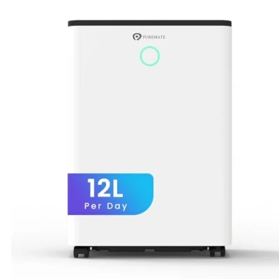 PureMate 12L/Day Dehumidifier for Home, Automatic Humidity Sensor, Digital Display, 24H Timer, Auto Shut Off, Continuous Drainage & Laundry Drying, Removes Damp, Condensation Odours.