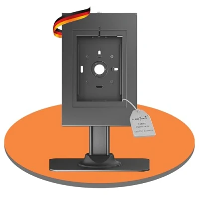 Lockable and anti-theft tablet case for iPad 5/6/7/8/9/ iPad Air 9.7"/ 10.5"/10.9"/ iPad Air 9.7"/10.5"/11" as well as Samsung Tab A 10.1 (2019)/ Tab A7/ S6 Lite 10.4" Rotatable housing for vertical (portrait) or horizontal (landscape) orientation - can be attached directly to the wall or via VESA 75 x 75 mount The tablet holder from PureMounts is made of powder-coated steel in matte black, making the holder extremely stable and very durable. Cut-outs for access to all controls + camera and power connection - Rear cable management for a tidy appearance Thanks to the instruction manual included in the packaging, the attachment of the tablet holder is extremely easy and is possible for anyone without much effort.