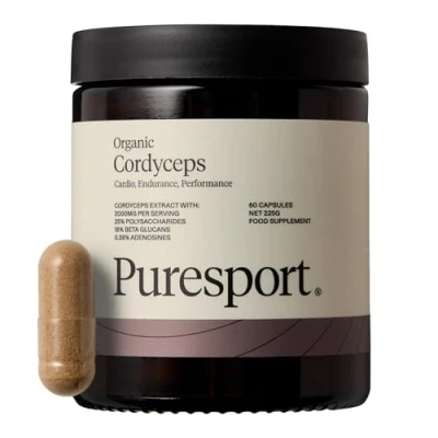 ππ‘ππ¨π₯ππ‘ππ, ππ‘ππ₯ππ¬, & π£ππ₯ππ’π₯π ππ‘ππ π¦π¨π£π£π’π₯π§: Cordyceps is a powerful adaptogen that naturally supports stamina, endurance, and cardiovascular efficiency. Our organic cordyceps extract is standardised to 25% polysaccharides, designed to help increase oxygen uptake, improve aerobic capacity, and support faster post-exercise recovery. Cordyceps have long been used in traditional Eastern medicine, and modern research supports its role in improving VO2 max, ventilatory threshold, and overall aerobic capacity. Trusted by professional athletes and tested under Informed Sport Certification, itβs a clean formula built for high-performance output. πͺππ¬ πͺπ π πππ π§πππ¦ π£π₯π’ππ¨ππ§: Physical performance isnβt just about training harder, itβs about supporting the body to function at its best. We created Puresport organic Cordycep for athletes and active individuals seeking a natural way to maintain stamina, support oxygen utilisation, and aid energy metabolism and recovery. With modern training demands, itβs vital to fuel the body with purposeful, functional ingredients that help you go the distance. Our Cordyceps Mushroom extract offers a clean and natural alternative to traditional energy supplements. πͺππ’ ππ¦ π§πππ¦ π£π₯π’ππ¨ππ§ ππ’π₯? Cardiovascular Cordyceps supplement is ideal for runners, cyclists, endurance athletes, and active individuals looking to support their stamina and recovery. Whether youβre training for a race, working to improve your cardiovascular health, or just want an extra performance edge, this is for you. ππ’πͺ π§π’ π§πππ: ππ’πͺ π§π’ π§πππ: For best results, take 2 Cordycep capsules per day. Cordyceps can have a stimulating effect, so itβs best taken in the morning. Cordyceps has a natural energising effect, making it ideal as part of your pre-workout routine to help improve aerobic performance and reduce fatigue. No scoop, no mess - our easy-to-swallow Cordyceps capsules offer a clean alternative to Cordyceps tablets, Cordyceps gummies, or Cordyceps powder supplements, with no fillers or artificial flavourings. π’π¨π₯ π ππ¦π¦ππ’π‘: We're building a movement that encourages people to commit to a long-term, sustainable approach to wellbeing. At the core of Puresport is three unwavering pillars: fuelling the body with natural, effective products, staying active through movement, and building meaningful connections within the community. Informed Sport Certified and trusted by the world's top athletes, we manufacture the highest-quality, natural supplements to help you hydrate, perform and recover your best, for the Long Run.