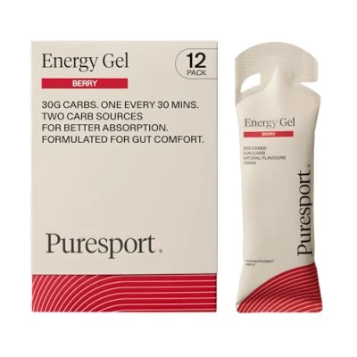 Puresport Energy Gels (Berry/12 Pack) Fast Release 30g DualCarb Running Gentle on Stomach, Natural Flavours & Vegan Simple Fuelling Gel For Running, Recovery Endurance Sports
