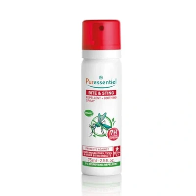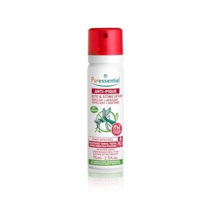 Puressentiel Bite & Sting Repellent Soothing Spray 75 ml Mosquito Repellent, Insect Fly Tick Effective Up To 7 Hours 100% Plant Origin Deet Free Child Safe