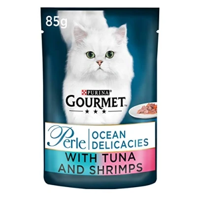 Made with tender pieces with tuna and shrimps Complete pet food for adult cats 100% complete and balanced nutritional pet food for adult cats (aged 1 to 7) Cooked with care for preservation of taste Served in 85g pouches to keep every meal fresh and convenient. Packed with essential vitamins and minerals to keep your adult cat healthy.