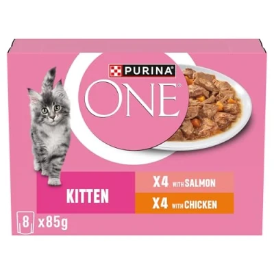 PURINA ONE Kitten Mini Fillets Salmon and Chicken Wet Cat Food 8x85g (Pack of 5)
