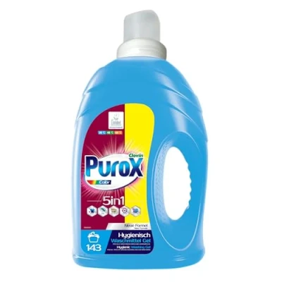 Universal Application – Purox Color Liquid Gel, ideal for washing coloured textiles, suitable for both hand and machine washing. Effective Protection – This product effectively removes moderate and light dirt while protecting your washing machine from limescale buildup. Easy Rinsing – The modern formula dissolves completely in water, leaving no residue on fabrics or in the washing machine dispenser. Eco-Friendly Choice – The product is phosphate-free, environmentally friendly, and biodegradable. Efficiency – A 4.3 l pack of washing gel is enough for 143 washes.