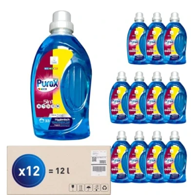Universal Application – Purox Color Liquid Gel, ideal for washing coloured textiles, suitable for both hand and machine washing. Effective Protection – This product effectively removes moderate and light dirt while protecting your washing machine from limescale buildup. Easy Rinsing – The modern formula dissolves completely in water, leaving no residue on fabrics or in the washing machine dispenser. Eco-Friendly Choice – The product is phosphate-free, environmentally friendly, and biodegradable. Efficiency – 12 packs of 1000 ml washing gel are enough for a total of 396 washes.