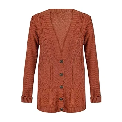Purple Hanger New Women’s Ladies Long Sleeve Button, Front Pocket Chunky Aran Cable Knit Grandad Cardigan Boyfriend Jumpers, Sweater Plus Size 8 26 (20 22, Rust)
