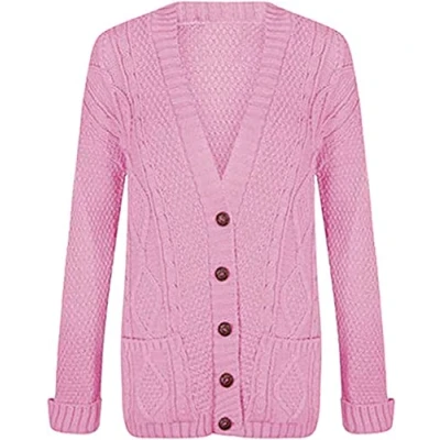 Purple Hanger New Women’s Ladies Long Sleeve Button, Front Pocket Chunky Aran Cable Knit Grandad Cardigan, Sweater Plus Size (8 10, Baby Pink)