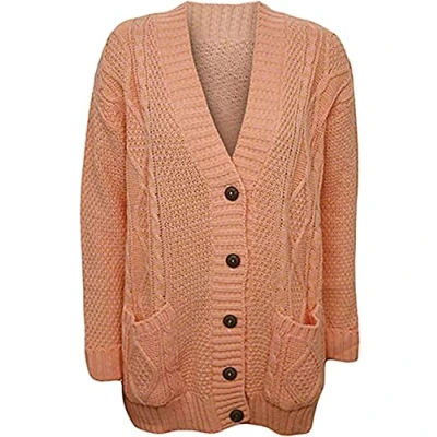 Purple Hanger New Women’s Ladies Long Sleeve Button, Front Pocket Chunky Aran Cable Knit Grandad Cardigan, Sweater Plus Size 8 26 (UK, Numeric, 8, 10, Regular, Peach)