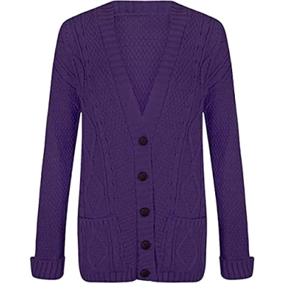 Purple Hanger New Women’s Ladies Long Sleeve Button, Front Pocket Chunky Aran Cable Knit Grandad Cardigan, Sweater Plus Size 8 26 (UK, Numeric, 8, 10, Regular, Purple)