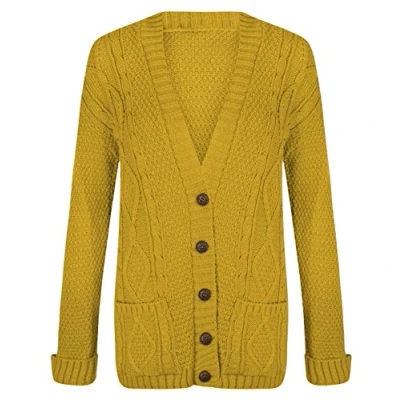 Ladies Cardigan With Button. Chunky Aran Cable Knit Pattern. Front Button Closure With Contrasting Quilted Buttons. Two Patch Pockets At The Front Length To Hem Should Be 73.7 Cm