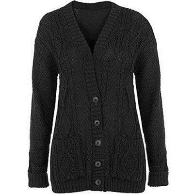 Purple Hanger New Womens Everyday Long Sleeve Button Top Ladies Chunky Aran Cable Knit Grandad Cardigan (16-18 XL, Black)