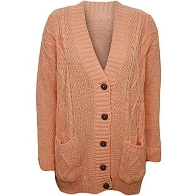 Purple Hanger New Womens Everyday Long Sleeve Button Top Ladies Chunky Aran Cable Knit Grandad Cardigan (20-22, Peach) Brand: Purple Hanger Product Type: SWEATER