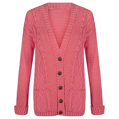 Purple Hanger New Womens Everyday Long Sleeve Button Top Ladies Chunky Aran Cable Knit Grandad Cardigan (20 XXL, Coral)