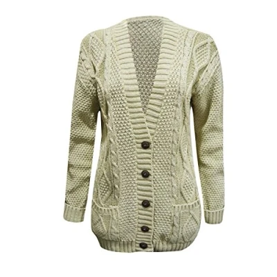 Purple Hanger New Womens Everyday Long Sleeve Button Top Ladies Chunky Aran Cable Knit Grandad Cardigan (20 XXL, Stone)