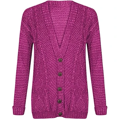 Purple Hanger New Womens Everyday Long Sleeve Button Top Ladies Chunky Aran Cable Knit Grandad Cardigan (8 10, Cerise)