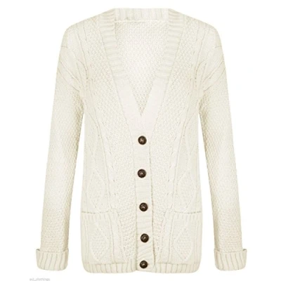 Purple Hanger New Womens Everyday Long Sleeve Button Top Ladies Chunky Aran Cable Knit Grandad Cardigan (UK, Numeric, 18, 20, Regular, White)