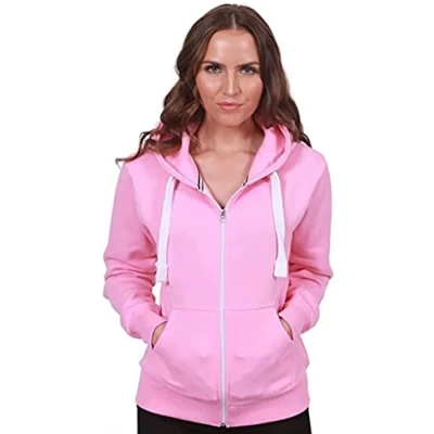 Purple Hanger Women New Long Sleeve Plain Zip Up Hoodie Top Ladies Hooded Pocket Everyday Casual Jacket Tops (2XL, Baby Pink)