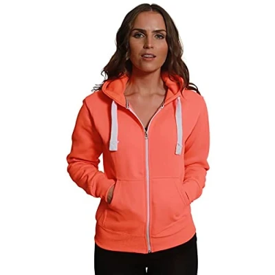 Purple Hanger Women New Long Sleeve Plain Zip Up Hoodie Top Ladies Hooded Pocket Everyday Casual Jacket Tops (3XL, Neon Orange)
