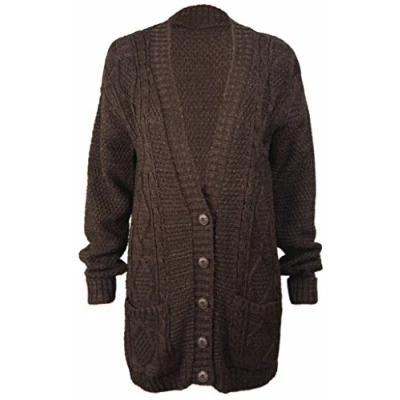 Purple Hanger Women’s New Long Sleeves Ladies Chunky Aran Cable Knit Button Grandad Cardigan Sweater Plus Size 8 26 (24 26, Dark Brown)
