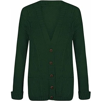 Purple Hanger Women’s New Long Sleeves Ladies Chunky Aran Cable Knit Button Grandad Cardigan Sweater Plus Size 8 26 (24 26, Dark Green)