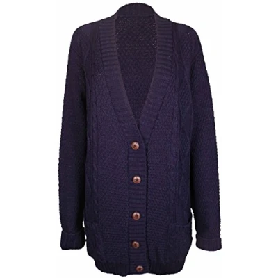 Purple Hanger Women’s New Long Sleeves Ladies Chunky Aran Cable Knit Button Grandad Cardigan Sweater Plus Size 8 26 (24 26, Navy)