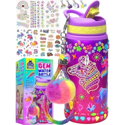 Perfect Christmas Gift for Girls: This DIY water bottle craft kit makes a great early Christmas present or stocking stuffer for girls aged 4 and up. The set includes everything needed to create a custom water bottle, making it one of the top Christmas gifts for kids. Encourages Creativity & Personal Style: Let your child express themselves with fun and colorful rhinestone gems, unicorn-themed stickers, and clip-on charms. A creative gift that promotes confidence and fine motor skills—ideal for holiday gift-giving. BPA-Free & Eco-Friendly: A great eco-conscious gift! The 591ml ombre bottle is BPA-free, leak-proof, and reusable—perfect for keeping drinks fresh at school, parties, or sleepovers. A fantastic Christmas gift for kids who love arts and crafts. Fun & Functional Craft Kit: This all-in-one craft kit offers hours of creative play and a practical use. A vibrant water bottle that's as fun to decorate as it is to use. A perfect addition to any Christmas gift set or stocking stuffer for girls ages 6 and up. Ideal for Holiday Gifting: Beautifully boxed, this DIY water bottle craft kit makes an unforgettable birthday or Christmas gift for girls. Complete with pompom keyring, rainbow wristlet, and 4 adorable unicorn charms—everything needed to create a personalized water bottle they'll love., Manufacturer: PURPLE LADYBUG