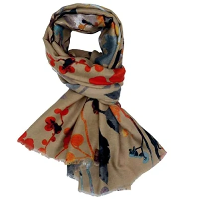 Lovely large scarf with a floral / leaf pattern. Excellent quality, long, wide and super soft with lightly feathered fringing to the ends, it drapes and falls beautifully. Measurements : approx. 74.8 inch / 190 cm in length, approx. 33.5 inch / 85 cm wide.