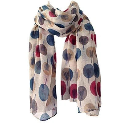 Purple Possum UK Scarf Beige Ivory Cream Sketch Tree Print, Ladies Wrap Shawl, Sarong Teal Maroon Red